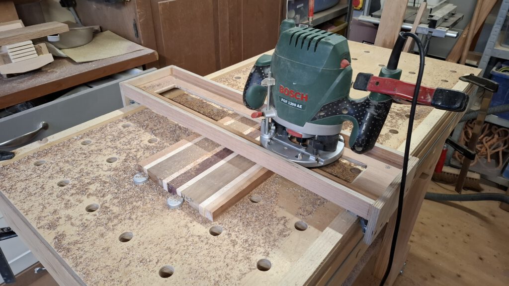 Voor het vlakken van de plank heb ik ooit zelf een slede gemaakt voor de bovenfrees. Daar zal ik een andere pagina aan wijden.